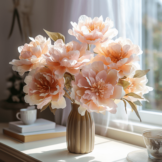 Caring for our artificial peonies is as simple as occasionally dusting them to keep them looking fresh and vibrant. For more thorough cleaning, they can be gently wiped with a damp cloth.